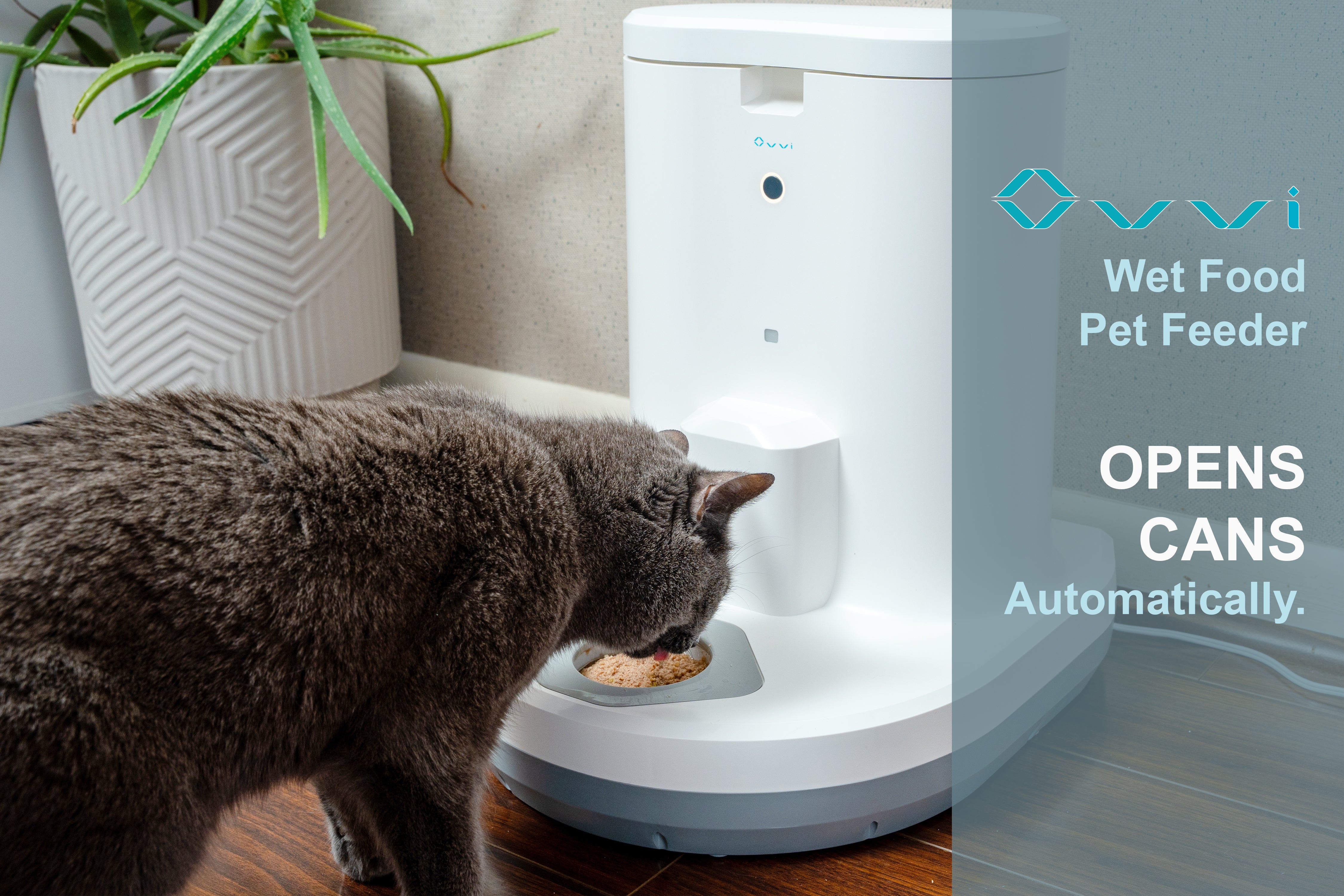The first of its kind, Ovvi will open up to 8 cans of wet food and feed it to your pet based on your preferred schedule and feeding amount. Sleep in on the weekends. Enjoy date night. Ovvi will feed your pet and update you via the Ovvi Pet Feeder app. So you can...