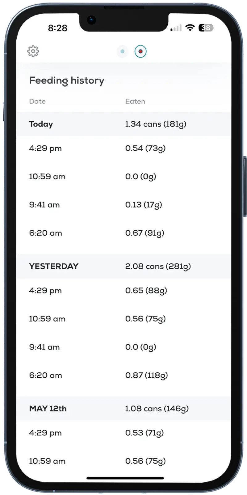 Receive confirmation about each meal including the amount consumed. Receive alerts, messages, feeding history and much more!